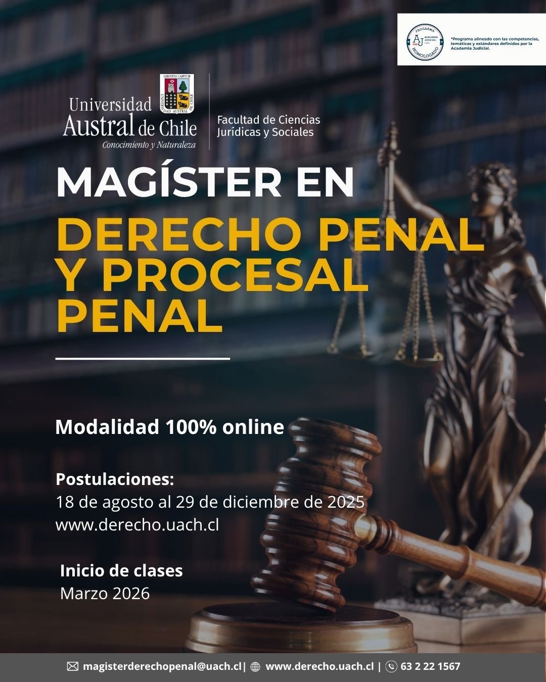 El valor del Magister en Derecho Penal y Procesal Penal es de $4.500.000 (referencial 2025), el que podrá ser pagado en hasta 16 cuotas (8 cuotas 2026 y 8 cuotas 2027). Al valor anteriormente mencionado se debe agregar el costo de la matrícula anual, que corresponde a $250.000 (referencial 2025) y los derechos de titulación correspondientes.