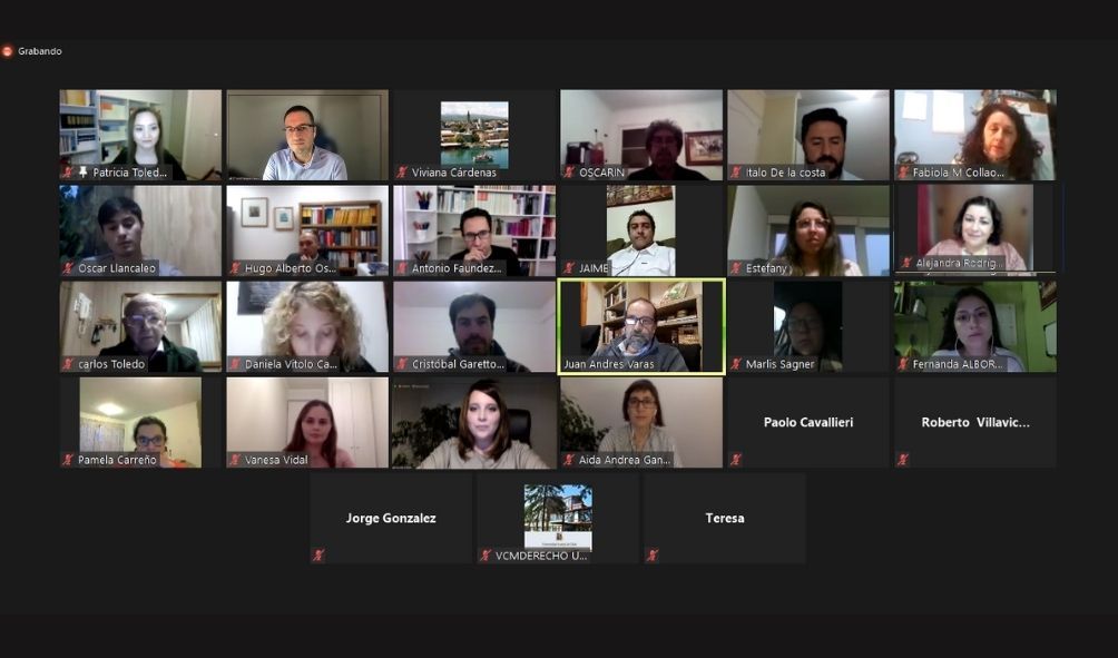 Debido a la contingencia por Coronavirus (COVID-19), la bienvenida se realizó mediante la plataforma Zoom, el viernes 7 de mayo, a las 18:00 horas, donde estuvieron presentes el Decano de la Facultad de Ciencias Jurídicas y Sociales de la UACh, Dr. Juan Andrés Varas; el Director de la Escuela de Graduados de la Facultad, Dr. Jordi Delgado; la Directora del Diplomado, Dra. Patricia Toledo; el Comité Académico del Diplomado, estudiantes nuevos, estudiantes de la promoción 2020 y docentes que participan del Diplomado.