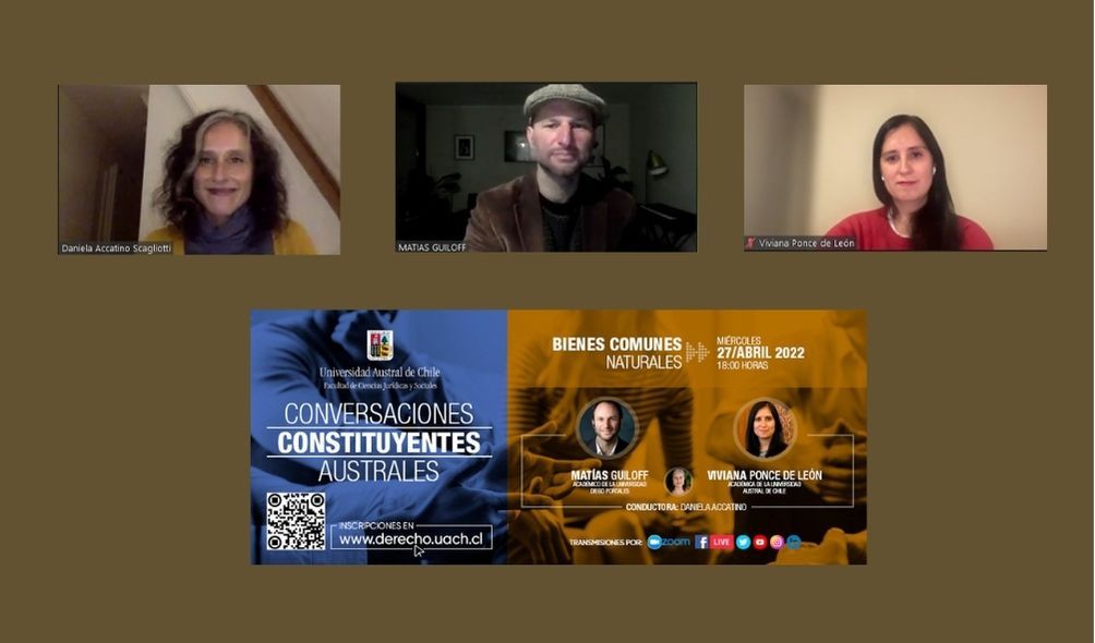 Valdivia, 28 de abril de 2022.- En su octavo capítulo de la segunda temporada, el programa Conversaciones Constituyentes Australes abordó el tema de «Bienes Comunes Naturales», junto al Dr. Matías Guiloff académico Universidad Diego Portales y Dra. Viviana Ponce de León académicas Universidad Austral de Chile
